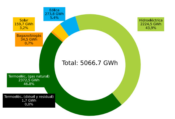 En el balance general, la matriz energética se distribuyó en gas natural (46.8%), hidroeléctricas (43.9%), renovables no convencionales como solar y eólica (8.6%), y petróleo y otros combustibles fósiles (menos del 1%). La producción total ascendió a 5,067 GWh, lo que representó un crecimiento de 1.7% frente al mismo mes de 2024.